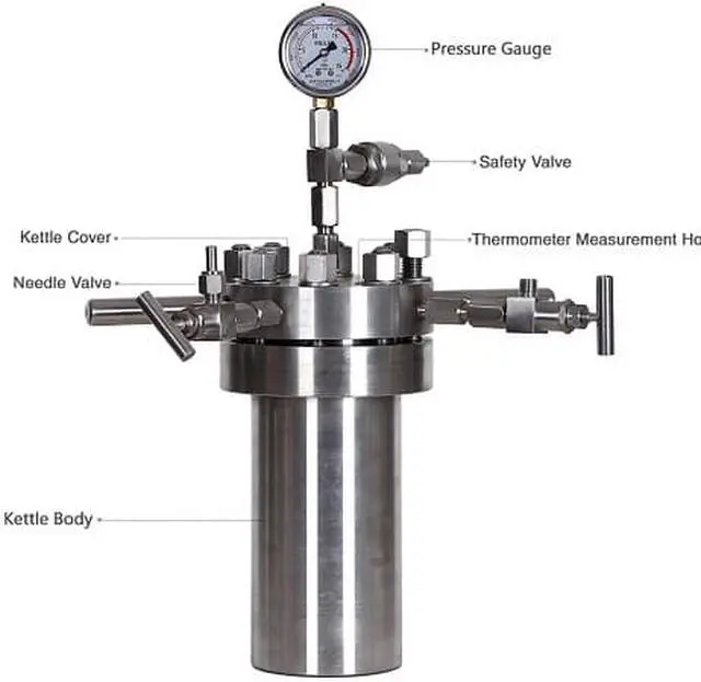 Product description: CF stainless steel simple autoclave is a simple high pressure reactor produced according to customer's requirements according to the functional characteristics of high pressure reactor. It can be placed in electric blast drying oven, constant temperature oil/water bath, low temperature tank and other environment, stainless steel material, can be configured communication terminals with computer, and can be customized volume according to customer needs. Also the PTFE liner is optional, please feel free to ask seller for quotation.