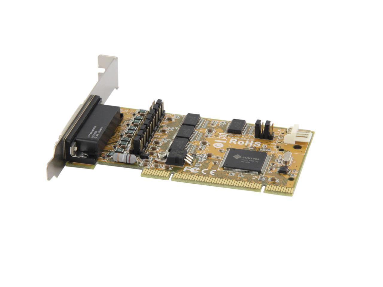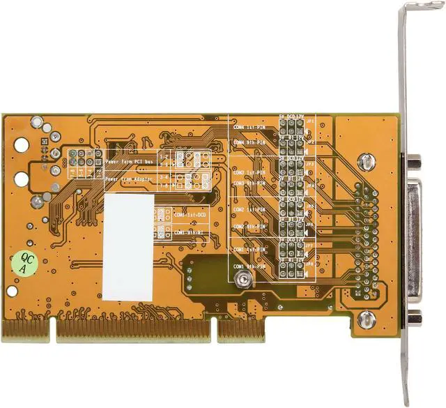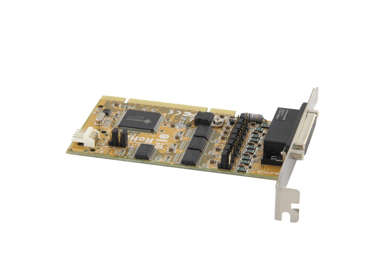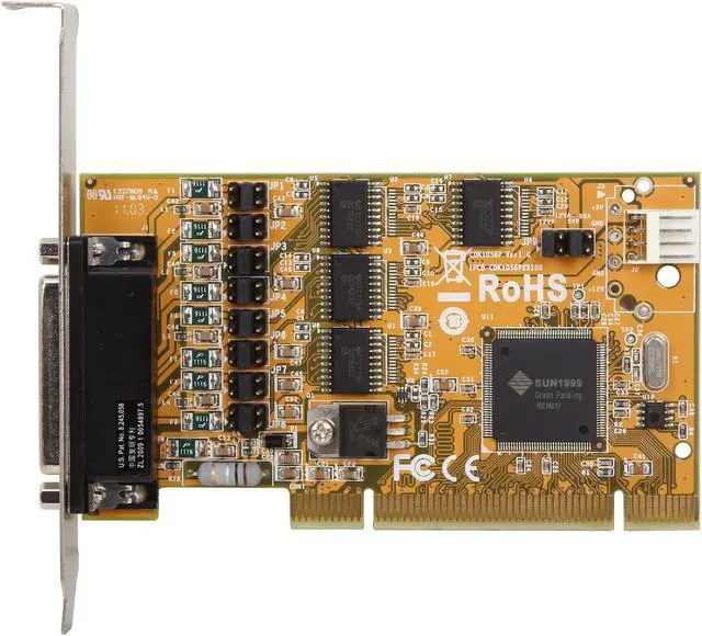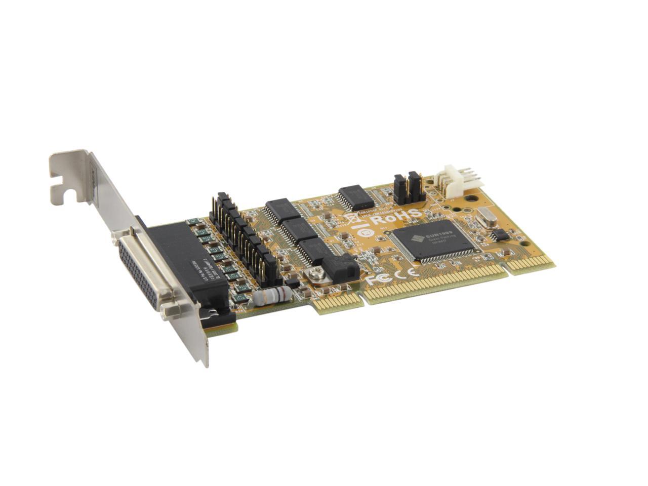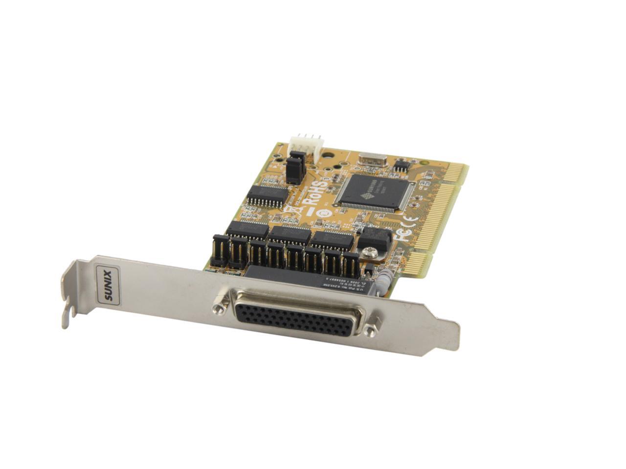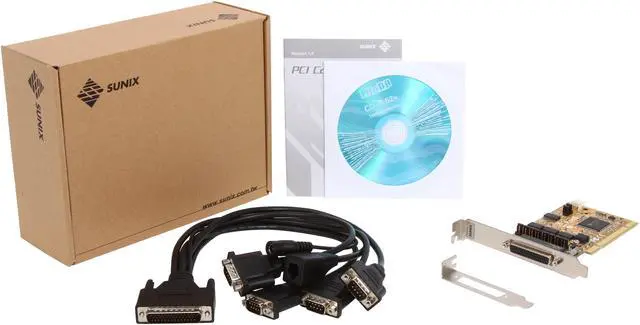 | Specifications | *With both Regular & Low-Profile brackets Serial Communication: Interface: RS-232 Controller: SUNIX SUN1999 (16C950 UART Compatible) Bus: Universal PCI 64/32bit 3.3V/5V PCI Ver 3.0, 2.3, 2.2, 2.1 No. of Port: 4-port IRQ & IO: Assigned by System FIFO: 128 byte (Hardware) Signal: TxD, RxD, RTS, CTS, DTR, DSR, GND, 5V/12V/ DCD, +5V/12V/RI Baud rate: 50bps ~115.2Kbps Stop bit: 1, 1.5, 2 Parity: even, odd, none, mark, space Flow Control: None, Xon/Xoff, RTS/CTS Protection: +/-2KV ESD protection for each signal Human Body Model (HBM) PCB connector: DB9 Male Cash Drawer Communication: Interface: RJ11/12 (6-pin), EPSON Printer Compatible Output: +12VDC Power Output: DC Power Jack Output: DC Jack +12VDC / 3A (depends on system power supply ability) COM port Output: +5 or 12VDC / 1A (depends on system power supply ability) Driver Support: Microsoft Client: XP/Vista/7(X86/X64) Microsoft Server: 2000/2003/2008(X86/X64) Microsoft Embedded: XP Embedded / POS Ready 2009/ Embedded System 2009/Embedded Standard 7 |
