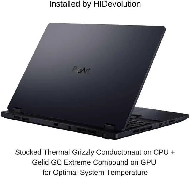 • HIDevolution upgrades the 16" 3.2K (3200 x 2000) OLED 120Hz touch Display Laptop with stocked Thermal Grizzly Conductonaut on CPU by adding Gelid GC Extreme on GPU for improved performance and optimal system temperature