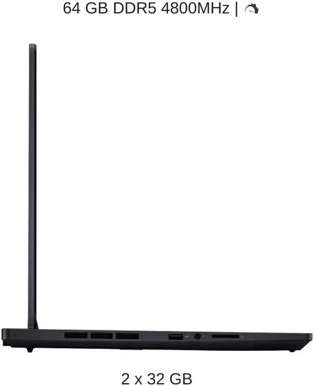 • 64 GB (2 x 32 GB) of fast DDR5 4800MHz dual channel system memory (Speeds subject to system capability)--run memory hungry applications and multitask with ease