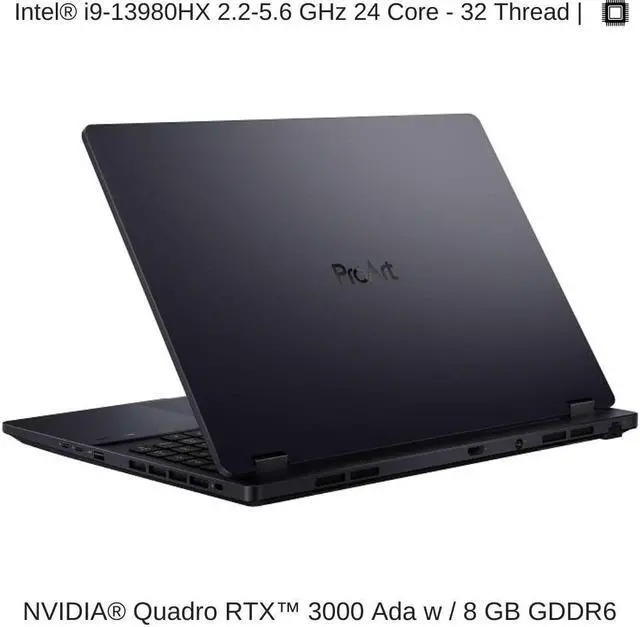 ASUS ProArt StudioBook W7604J3D 16" 3.2K 120Hz Touch, 2.2 GHz i9-13980HX, RTX 3000 Ada, 64 GB DDR5 RAM, 2 TB PCIe SSD, Windows 11 Pro