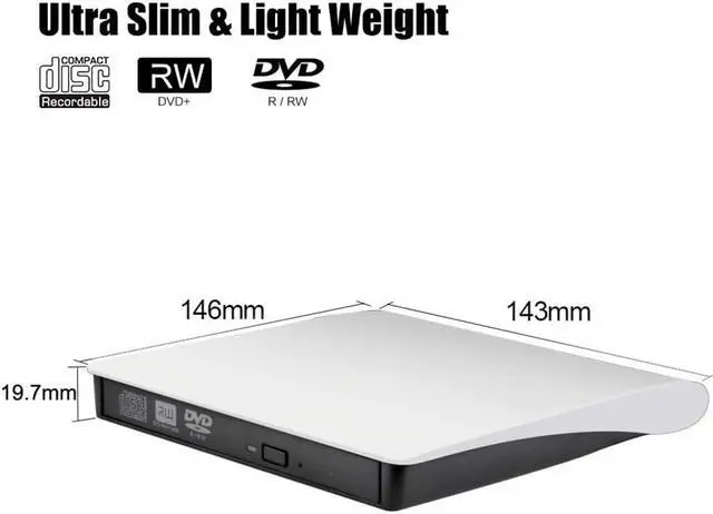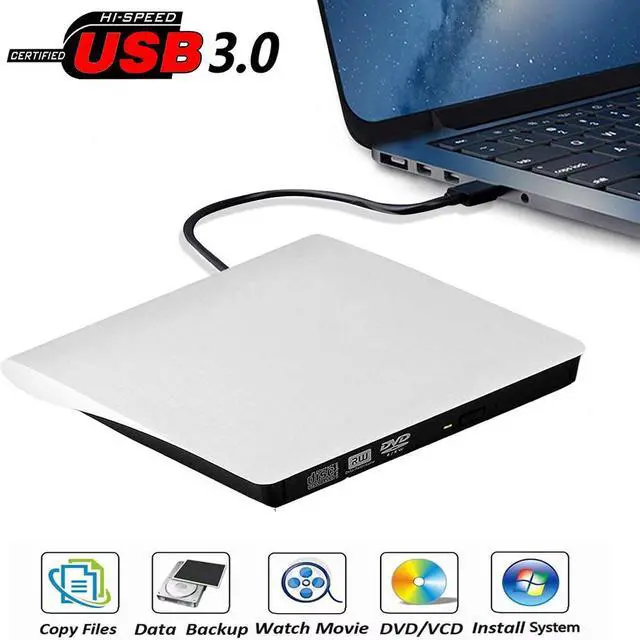 External DVD cd drive burner writer, allow you to watch DVD movies, burn files/music/movies to CD / DVD, install software and create backup discs etc.