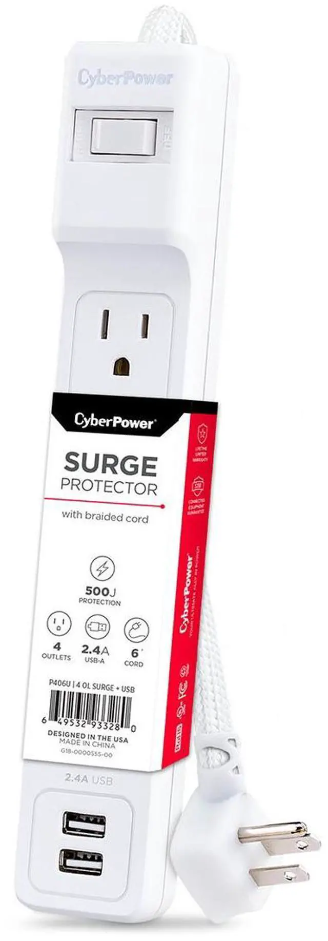 CyberPower P406U Home Office 4 Outlet Surge Protector with 500 J Surge Suppression