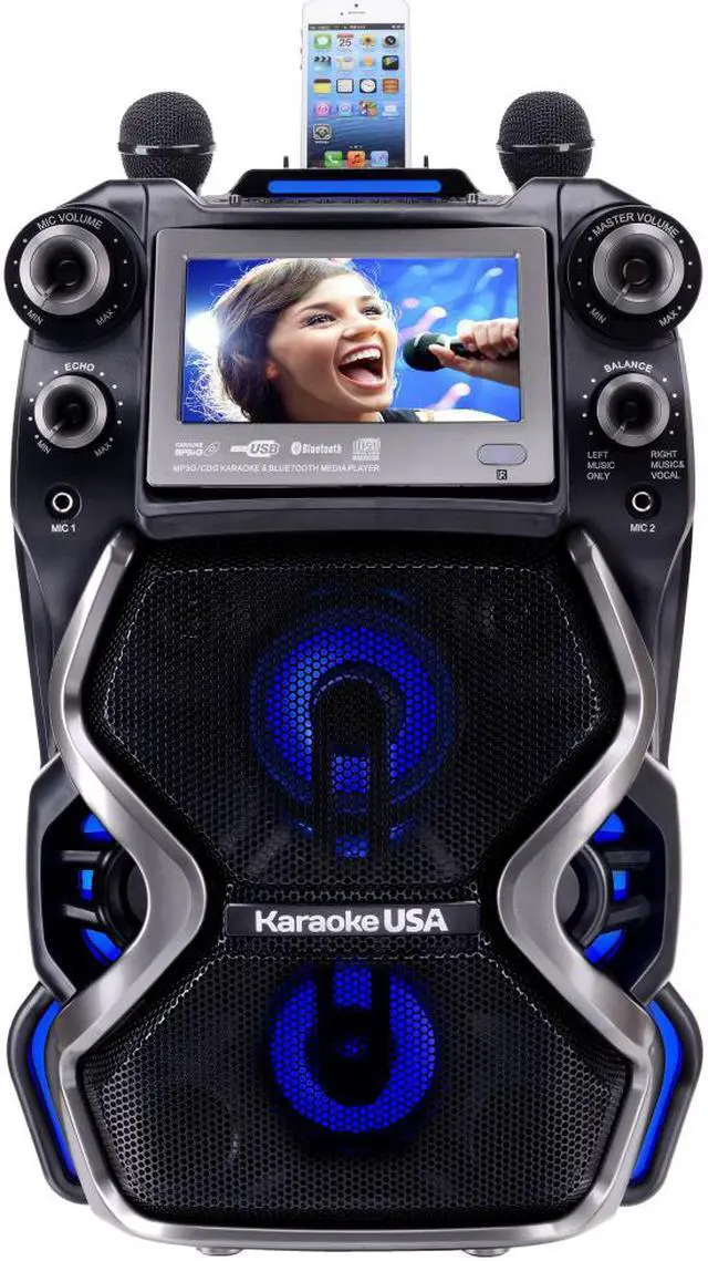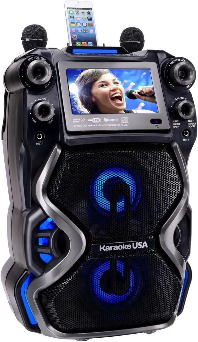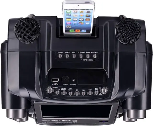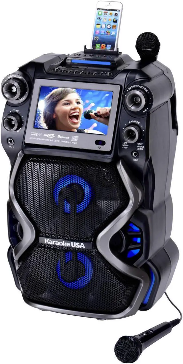 Kick it up a notch with this powerful digital karaoke player and PA system combo with 7" color screen. Outstanding speaker performance provides a professional experience your crowd will remember. As well as playing digital MP3G downloads, it plays your legacy CDG karaoke discs. Display song lyrics on screen or output to your TV screen. Connect your smart device, using Bluetooth, to play any audio stream on this units powerful speaker system. It will accommodate dual microphones to keep the crowd involved. Get the party started!.