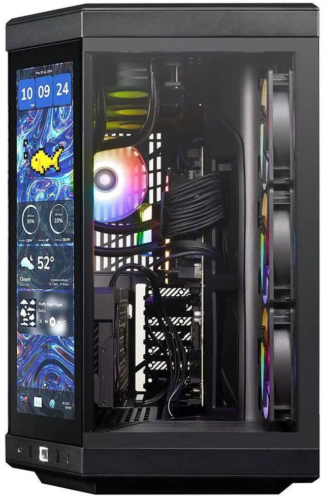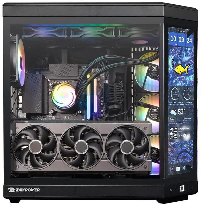 Discover the gamer experience and upgrade your RGB setup thanks to the included iBUYPOWER gaming keyboard and mouse. To keep your computer cool and quiet at full power, the Y70TIBA7N5801 boasts the new 2024 iBUYPOWER AW4, a 360mm liquid CPU cooling system - AW4, and RGB fans in a Y70 Touch Infinite Black case.