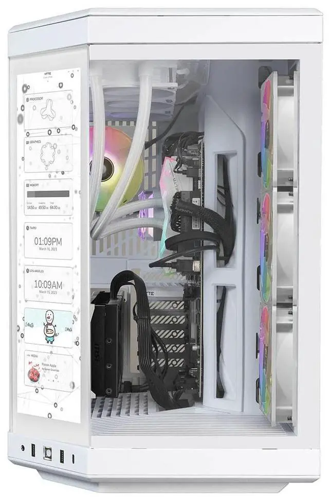 Discover the gamer experience and upgrade your RGB setup thanks to the included iBUYPOWER gaming keyboard and mouse. To keep your computer cool and quiet at full power, the Y70TIWI9N57T01 boasts a 360mm AIO cooler, and RGB fans in a premium HYTE Y70 Touch case.