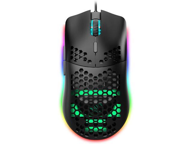 USB Gaming Mouse, Honeycomb Lightweight Gaming Mouse, 6 Button 6 RGB Backlit, up to 6400 DPI, Wired PC Gaming Mouse for Mac Laptop Computer (Black)