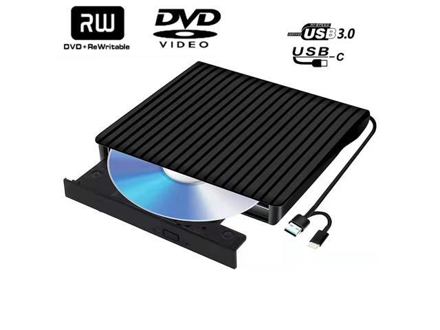 External DVD Drive, High-Speed Data Transfer USB Type C and USB 3.0 Slim DVD-RW Player Burner Writer Rewriter for Laptop Notebook Desktop PC Mac OS/Windows/Linux (Black)