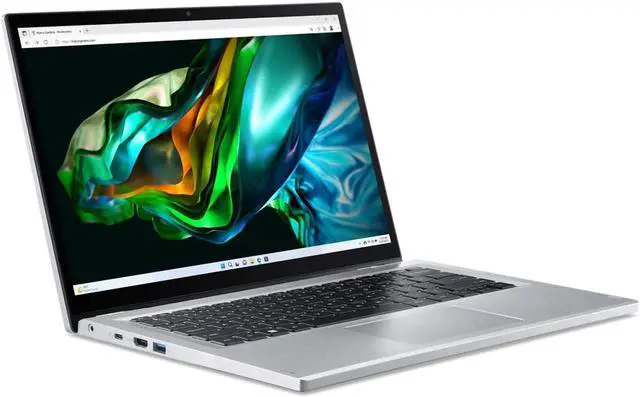 Model: Acer Form/Style: 2-in-1 ConvertibleModel No: A3SP14-31PT-32M6Processor: 12th Gen i3-N305 1.80GHz Processor (upto 3.8 GHz, 6MB Cache, 8-Cores, 8-Threads, )Memory: 8GB OnBoard LPDDR5 RAMGraphics: Intel UHD Integrated Graphics, Storage: 256GB PCIe SSD (Solid State Drive)Operating System: Windows 11 Home S-Mode-64Display: 14.0" IPS Wide UXGA (1920x1200) 60Hz 16:10 Touchscreen DisplayConnectivity: 802.11ax Wifi, Bluetooth 5.2, Ports/Slots:, HDMI, USB 3.2 Type-C, No Optical Drive, Headphone/Microphone Combo JackInput/Output: Integrated Webcam, Black, Standard Keyboard, Battery: 45W PSU, 3-Cell 50 WHr BatteryOther Features, Color: SilverWeight: 3.39lbProduct Dimensions (WxLxH): 12.6 IN x 9.00 IN x 0.74 IN