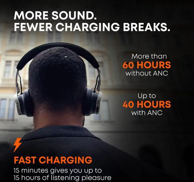 With active noise cancellation (ANC), you can enjoy peace and quiet whenever you need it. Immerse yourself in pure audio worlds and arrive relaxed even after long journeys. When needed, your surroundings can be brought back in at the touch of a button. Excellent voice clarity ensures that every mobile meeting or phone call is a pleasure - no matter where you are.