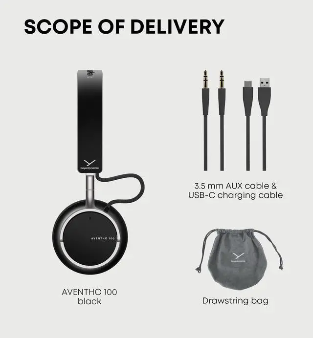 Timeless, elegant, unmistakable – the AVENTHO 100 brings iconic design to your daily routine. Honoured with the Red Dot Award, it makes a stylish statement in three colour options and complements every outfit as a sound-rich accessory. Premium materials such as aluminium and textile elements ensure durability – as do the replaceable ear pads. Its lightweight on-ear fit and foldable housing make it the perfect companion, fitting easily into most handbags or travel luggage.