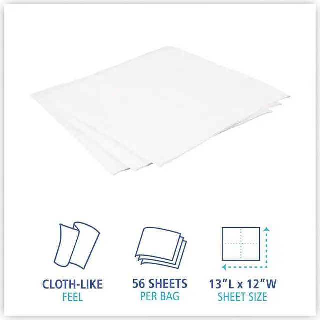 Durable, DRC wipers provide a convenient clean and a cloth-like feel. Highly absorbent wipers. Low-linting wipes are also great for staining. Unique stretch and softness. Ideal for glass, mirrors and general purpose cleaning. Soft enough to use as a personal wipe. Towel/Wipe Type: Dry Wipes; Application: General Purpose; Material(s): Double Recrepe (DRC); Color(s): White.