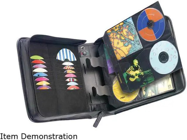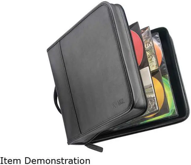 Classic faux leather CD Wallet holds 224 CDs in patented ProSleeve pages. Innovative Fast-File pockets allow immediate access to 16 additional favorites.