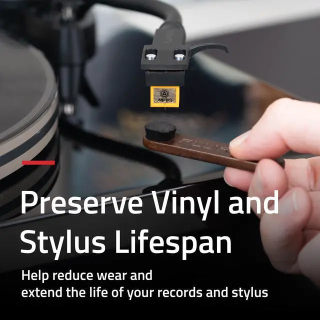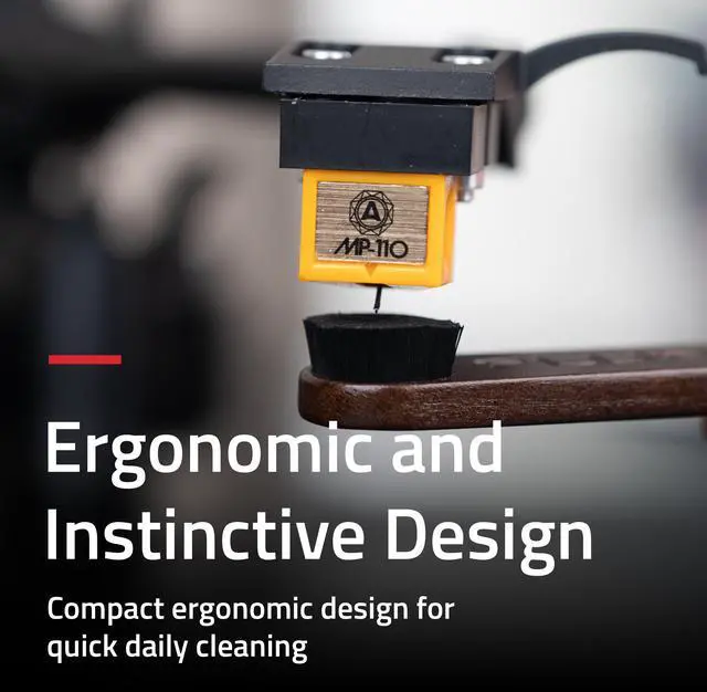Dedicated Turntable Stylus BrushThe stylus brush, crafted with a beechwood handle, carefully lifts dust buildup from your turntable stylus. By keeping the stylus tip clean, it helps reduce playback pops and crackle.