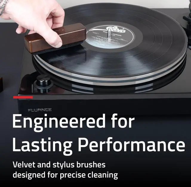 At Fluance, our passion for authentic sound drives every product we develop. The Fluance 2-in-1 Vinyl Record and Stylus Cleaning Kit includes a velvet vinyl brush and stylus cleaner designed to help keep your records and stylus in pristine condition while preserving their rich, natural sound.