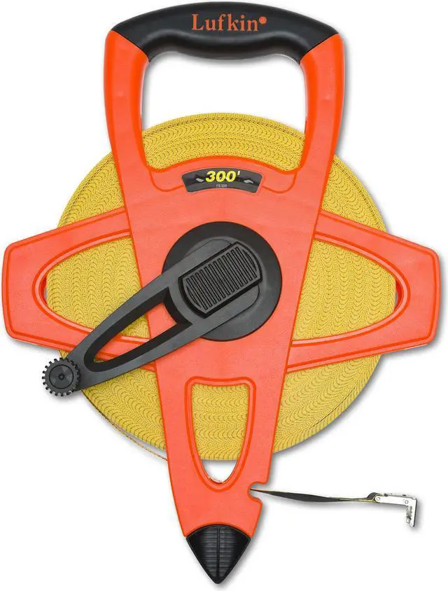Crescent/Lufkin Hi-Viz Orange Reel Fiberglass Tapes Open four-arm frame design protects blade, does not trap dirt in case. Lightweight but strong case is easy to handle and rewind. Two-material grip is comfortable to use. Hi-Viz orange case is easy to find on the job site. Folding end hook for true-zero measurements. Yellow-clad fiberglass blade impervious to moisture Pack of 1