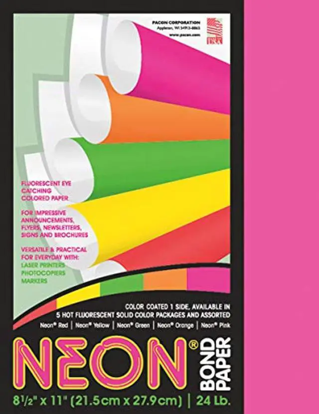 Hot fluorescent colors bring your messages to life. Bond paper works well in laser and inkjet printers, photocopiers and offset printers. This 24 lb. paper is acid-free and recyclable.