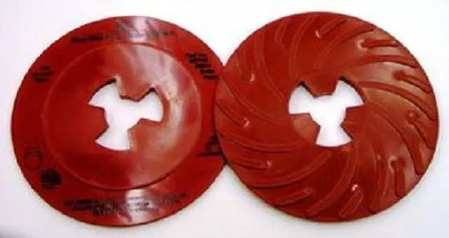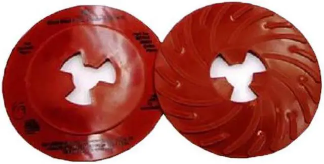 The 3M™ disc pad face plate securely supports a fiber disc (sold separately) of equal diameter. Using a 3M disc pad hub (sold separately) and holding a fiber disc, the face plate is held in place with a retainer nut (sold separately). This assembly means the face plate can be easily changed without removing the disc pad hub, allowing the operator to use a single tool for multiple applications from heavy grinding to finishing a workpiece. Easily changed without removing the disc pad hub. Using correct face plate maximizes the life of the abrasive. Hard density for heavy metal removal, large welds, etc. Disc Pad Ribbed Face Plate, 5 in D, PK10