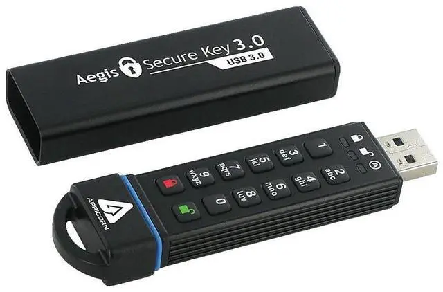 The Apricorn Aegis Secure Key ASK3-480GB 3.0 USB flash drive in black, protects your confidential data. This portable drive has 195 Mbps read/162 Mbps write, 480GB storage capacity and uses full-disk AES-XTS 256-bit military grade hardware-based encryption method. The on-board alphanumeric keypad allows you to protect and lock your drive by accessing the drive through a unique pin. This super speed USB 3.0 technology helps to store and access the data easily without compromising the transfer speed.