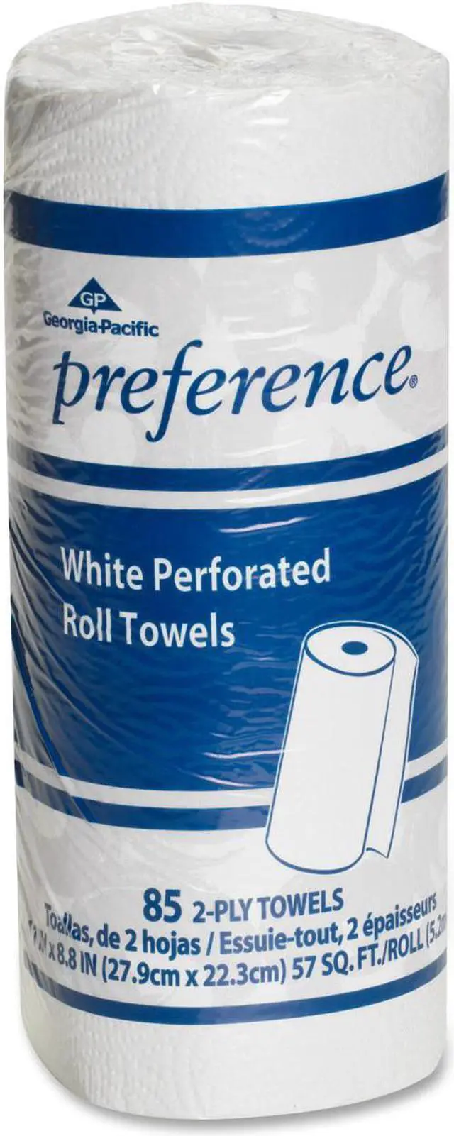 Two-ply perforated paper towels on a roll offer reliable performance for everyday cleaning and wiping tasks. The full-weight, full-strength sheets are embossed for extra absorbency. Paper towels on a roll fit most standard, kitchen towel-roll dispensers. Each roll has 85 sheets.
