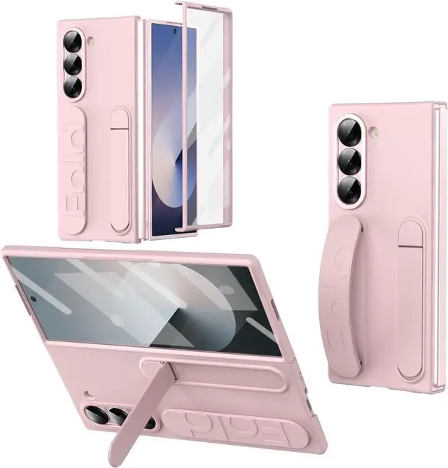 WERLEO Case for Samsung Galaxy Z Fold 7 with Wristband Stand, Bulit-in Screen & Lens Protector Shockproof Full Body Drop Fall Protection Cover Pink