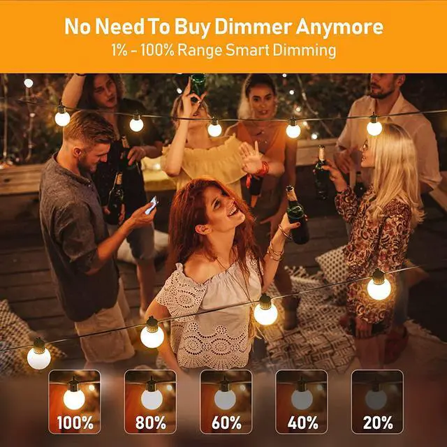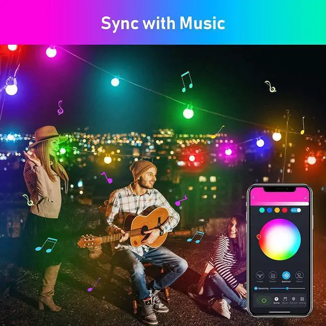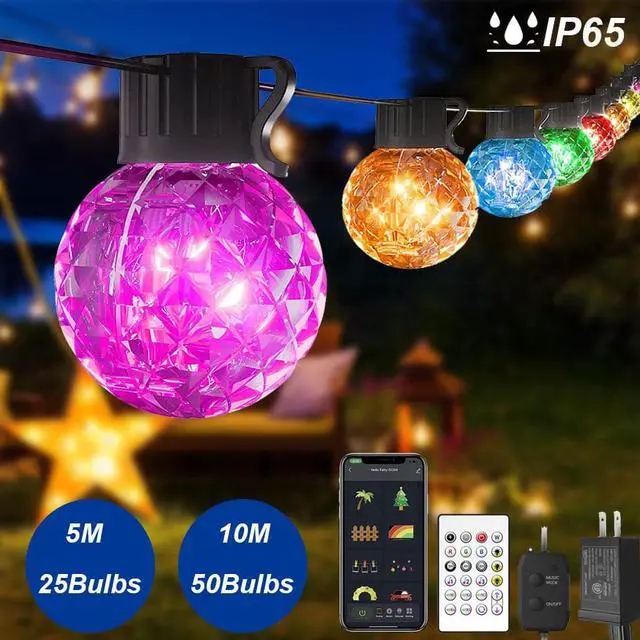 LED G40 Globe Bulb String Lights Outdoor RGB Music Sync APP Remote Dimmable For Wedding Holiday House Backyard Garden Party