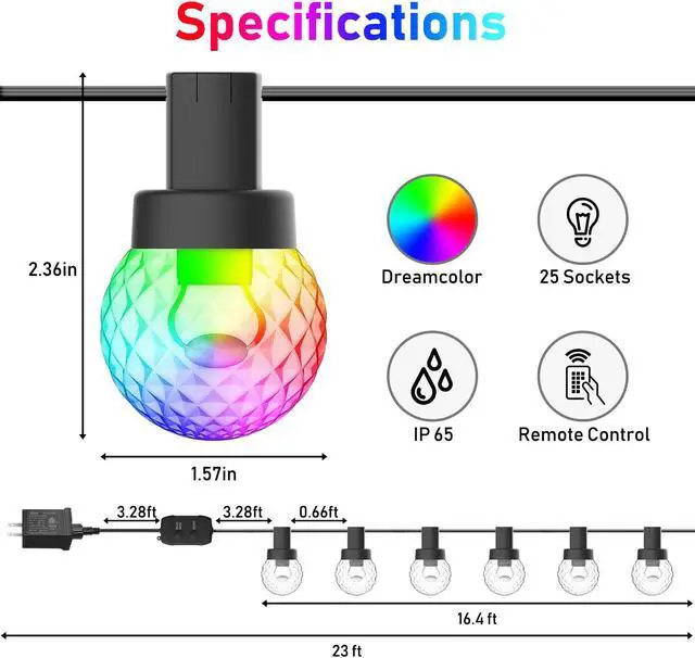 5 Waterproof grade: LED string IP65, Controller IP55