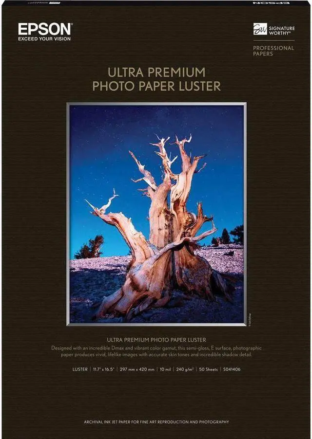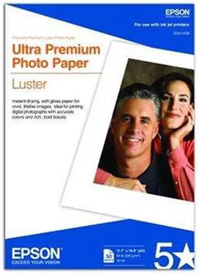 Wedding, portrait and school photographers have traditionally used luster paper for their photos. Now Epson offers this popular surface paper, Premium Luster Photo Paper, to digital printmakers. This instant drying paper produces vivid, lifelike images that rival those of traditional silver halide prints. Premium Luster Photo Paper delivers highly saturated prints by offering maximum ink coverage and a high D-Max for true photographic reproductions. Its 10-mil RC base gives prints a photographic feel, and keeps the paper cockle-free. Ideal for use with all Epson Inks. Like all of Epson's innovative media, this paper is engineered to give you the highest resolution and color saturation possible.