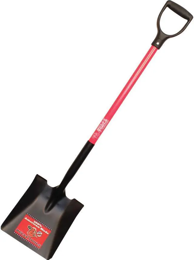 Bully Tools 14 Gauge, Square Point Shovel With Reinforced Fiberglass Handle & Wide D-Grip. Double Riveted Steel Sleeve.