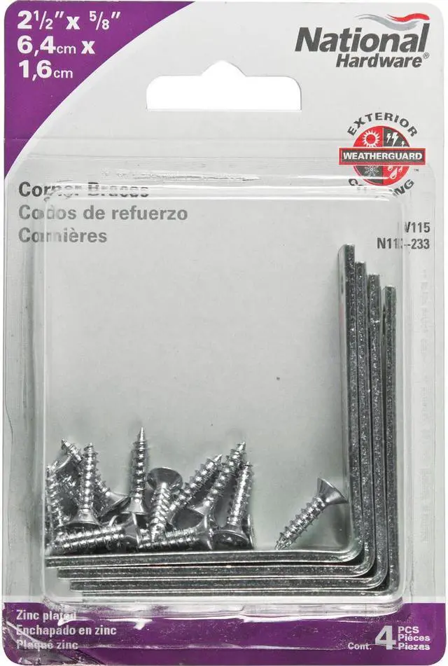 National Catalog V115 2-1/2 In. x 5/8 In. Zinc Steel Corner Brace (4-Count)