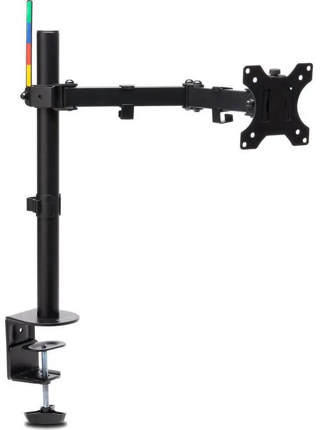 The SmartFit® system makes finding the right height for maximum comfort as easy as 1-2-3. Simply match your hand size to the color on the provided chart, set the height to your color, and you're done. Wide adjustment range delivers ±90° swivel, ±180° rotation (for landscape or portrait orientation), and ±45° monitor tilt adjustment for ergonomic comfort. Cable management system for clutter free desktop Single. Extendable arm allows upto 15-7/10" distance adjustment. VESA. For monitors up to 17.6 lbs (34"). Includes C-clamp and grommet fastener. Black.