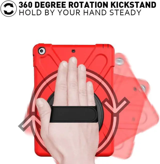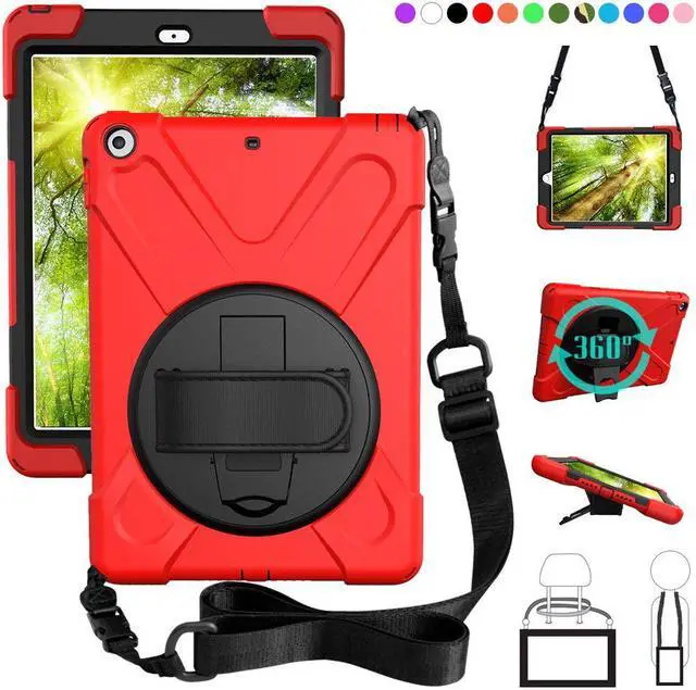 New iPad 9.7 2017 2018 Case,360 Degree Rotatable with Kickstand,Hand Strap and Shoulder Strap case, 3 Layer Hybrid Heavy Duty Shockproof case for iPad 9.7 5th/6th Generation