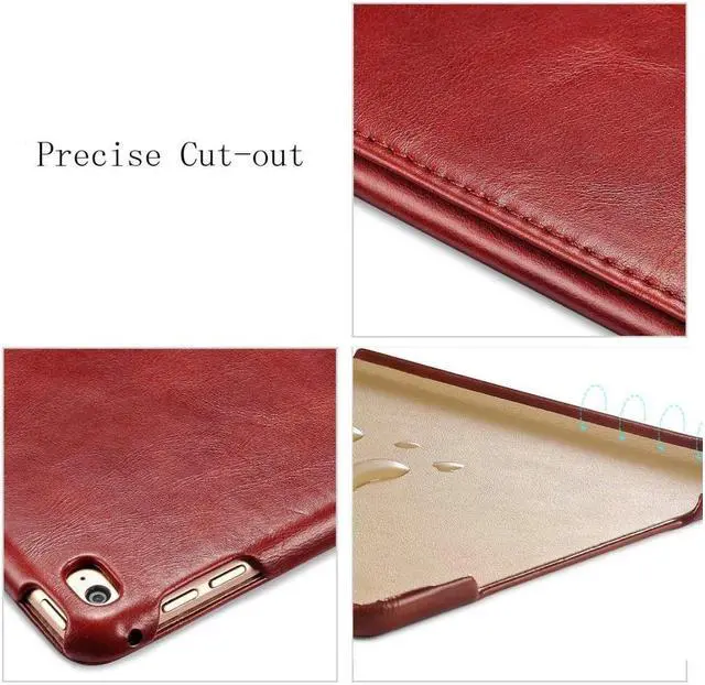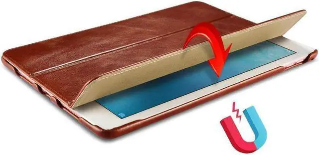 Features: Made of real cowhide leather which hand feeling is comfortable; Built-in magnet to control the auto sleep / wake function; Hidden magnet closure without strap make it slim and easy to carry; Hands-free standing function help you reading or typing with iPad easier; Exquisite cutout make it not effect the usage of iPad;