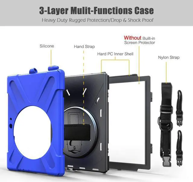 Compatibility: The case ONLY compatible with Microsoft Surface Go 10 Inch 2018 Release Tablet. With pen holder, (No Built-in screen protector) (Surface Pen Not included). Not Compatible with Microsoft Type Cover Keyboard. 360 Degree Rotate