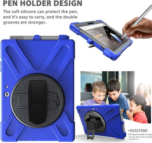 Microsoft Surface Go Case Heavy Duty Rugged Case Cover with Pen Holder 360 Degree Rotating Hand Strap Kickstand + Shoulder Strap for Surface Go 10 Inch 2018 Not Compatible Type Cover Keyboard