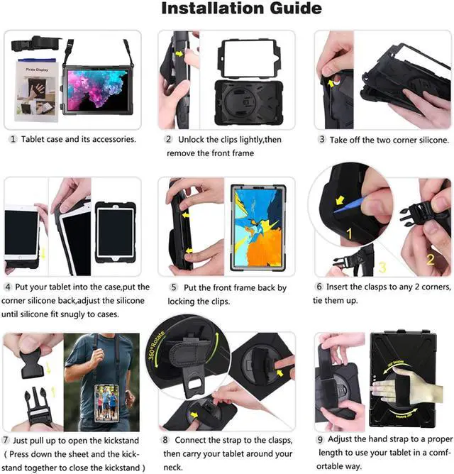 Shoulder Strap: With the attachable shoulder strap, tablet can be carried vertically or horizontally in a more secure way during hiking, traveling or other outdoor activities. Also allows you to hang up your tablet behind car seat for tablet entertainment for kids. Strong Drop