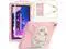 On the back side of thw tablet Case,built-in kickstand can supports your tablet both in horizontal/vertical position and hand strap makes it easy for you to hold the tablet.