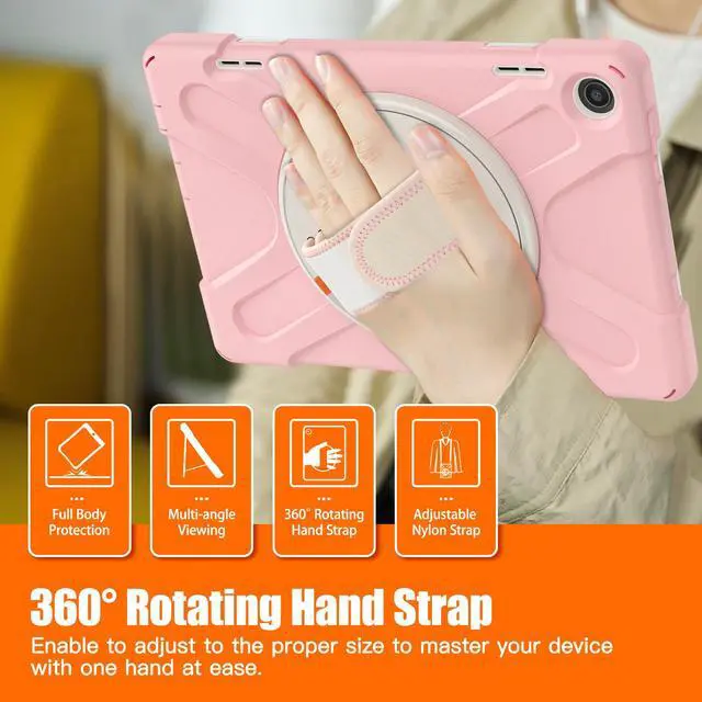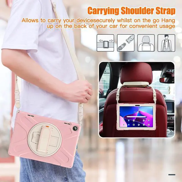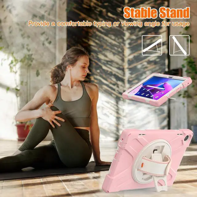 Case for Lenovo Tab M10 3rd Gen 10.1 inch 2022 Model TB-328FU TB-328XU with Pencil Holder, Kickstand, Hand & Shoulder Strap Shockproof Protective Cover Pink
