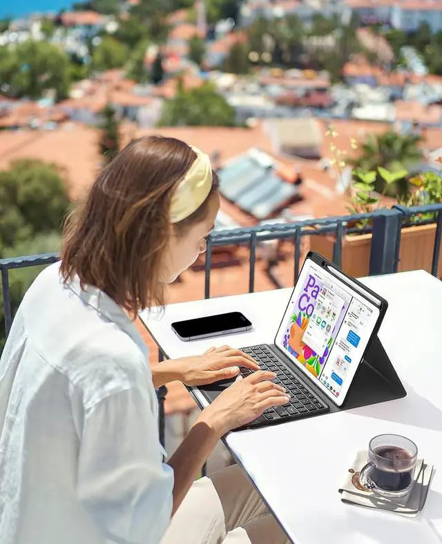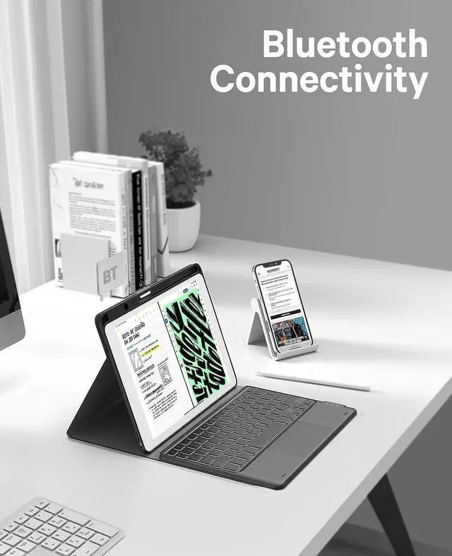 Removable Keyboard Case --- This keyboard is removable and the Bluetooth connectivity is easy. With this Stylish and Elegant design, it can transform your tablet into a laptop in less than a second and give your tablet a full protection.