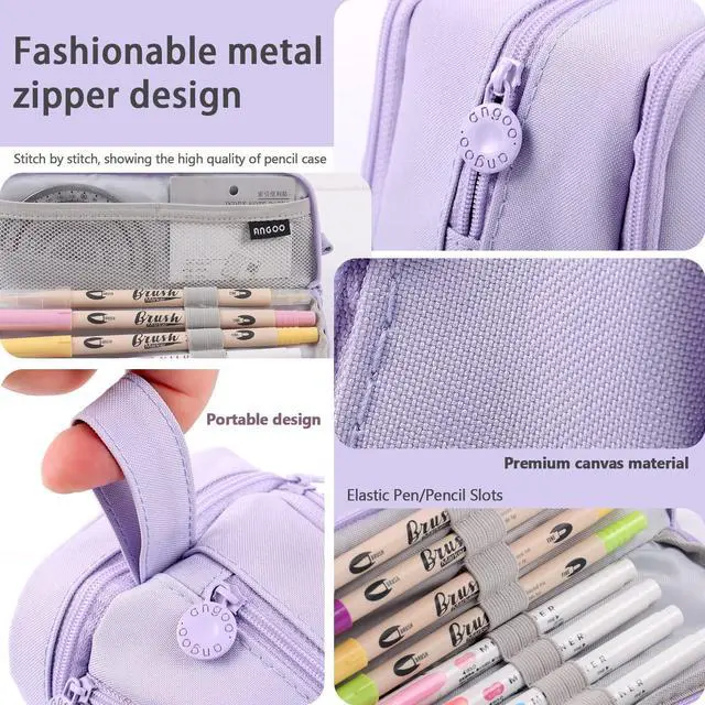 Premium Quality: This multifunctional pencil bag is made of high standard canvas cloth fabric and fine workmanship, it is washable. Zippers are smooth, easy to open and close.