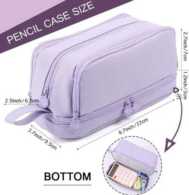 Large Capacity Pencil Case: Upgraded size 8.7*3.7*4inches (L*W*H) with large capacity storage, It can store up to 100+ colored pens or pencils. Perfect for students who need to carry a variety of stationery accessories such as pens, pencil sharpener, calculator, rubber, sticker, ruler, etc.