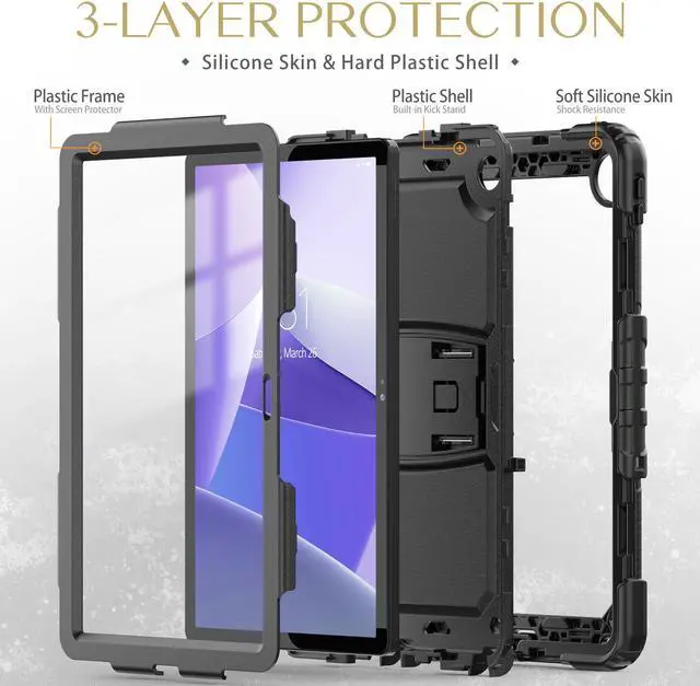 [Full Protection]: - The Lenovo Tab M10 Plus 3rd Gen 10.6 Case, made of soft silicone and hard plastic with built-in screen protector, offering comprehensive protection to your device, protecting your tablet from scratches, drops, shocks or any other daily damages.