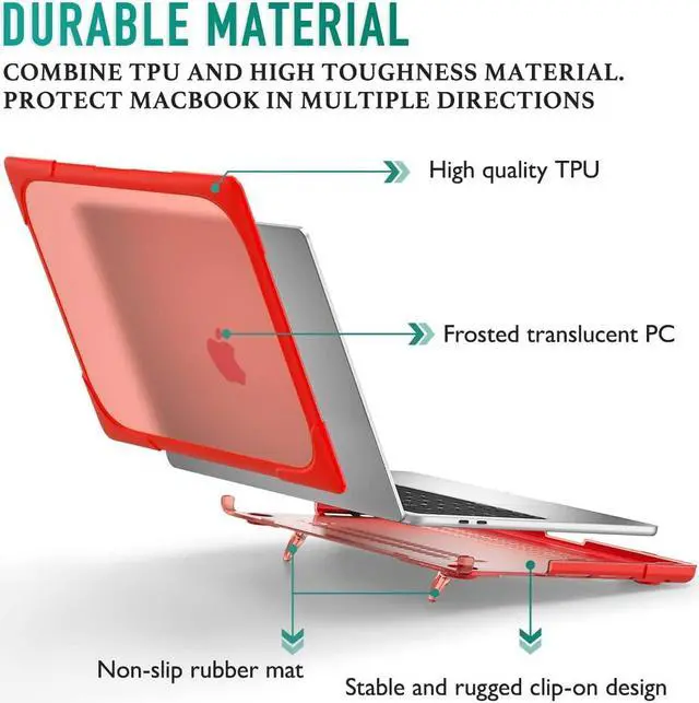 Humanized Design Two rows of bottom ventilation design provides fully heat release, helping your MacBook stay cool. Four anti-slip raised rubberized feet not only improve air ventilation, but also keep your case standing firmly in place.