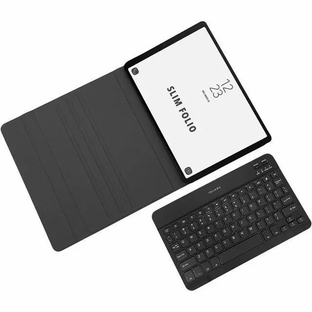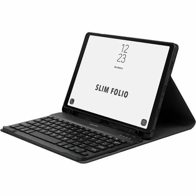 The Slim Folio Bluetooth Keyboard case is protective, compact and user friendly. A unique detachable magnetic keyboard design allows you to have freedom to use the keyboard without the case. Long lasting battery for hours of productivity! Adjustable kickstand allows for excellent viewing angles while typing, on digital meetings or different working environments.FEATURES Detachable Bluetooth keyboard Adjustable viewing angles Auto shutoff after 10 minutes Battery lasts about 70 hours - standby up to 150 days USB-C charge cable included