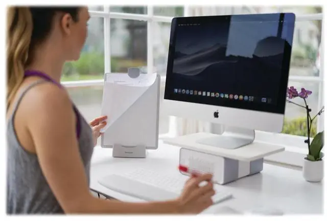 The OfficeAssist Multi-Function Copyholder does the job of many, while using the space of just one. In addition to being a sturdy copyholder, it's a magnetic dry-erase whiteboard, clipboard, bookstand, cell phone holder with built-in cable management for charging, and pen holder. An ergonomic solution for holding hard copy documents, the OfficeAssist Multi-Function Copyholder helps improve posture. It's the perfect desk-side companion, featuring 50 sheet capacity, dual page orientation, and VESA compatibility.