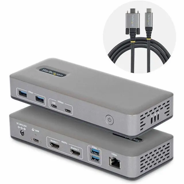 StarTech Dual-Monitor USB-C Docking Station HDMI 4K 60Hz 100W Laptop Charging 1GbE Driverless Multi-Monitor Dock 196NUSBCDOCK