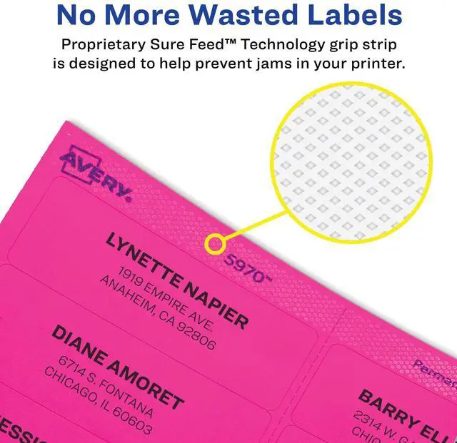 Print your neon Avery labels without any jams or misalignments with the built-in Avery Sure Feed technology.