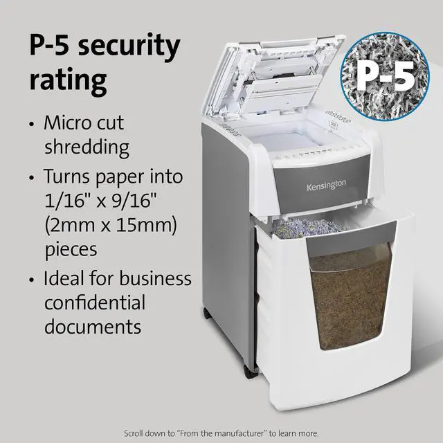 P-5 SECURITY RATED MICRO CUT SHREDDING TURNS PAPER INTO 1/16INCH X 9/16INCH (2MM