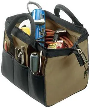 • Features: 14 multi-use pockets inside and outside for organizing tools and accessories Opens wide for easy access to bag's contents Padded reinforced web carrying handles for reliable transport Heavy duty stitching and bar tacking at all stress points for optimal durability Dimensions: 12 inches by 8-1/2 inches by 8 inches (L x W x H)