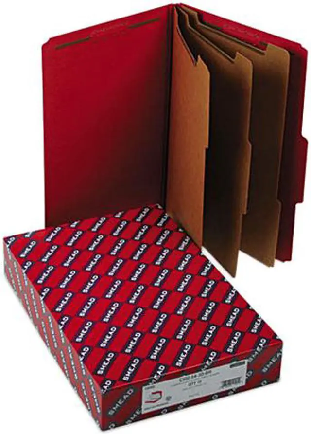 • Right of Center Tab Location - 3 Divider(s) - 25 pt. Folder Thickness - Pressboard - Bright Red - Recycled - 10 / Box